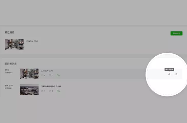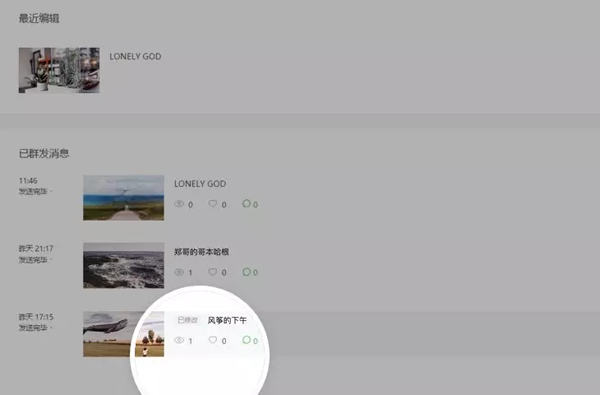 3、修改完成,在首頁(yè)已群發(fā)列表,可以看到文章?tīng)顟B(tài)變更為“已修改”。用戶(hù)訪問(wèn)文章將看到已更新的內(nèi)容。文章底部將顯示修改時(shí)刻。