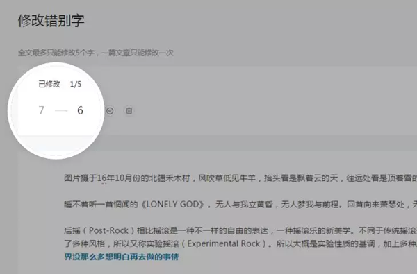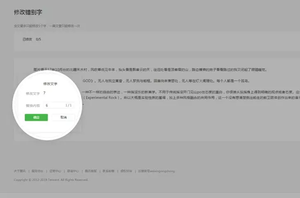 為了給運(yùn)營(yíng)者、讀者提供更友好的編輯、閱讀體驗(yàn),公眾平臺(tái)新增修改文章錯(cuò)別字功能,支持運(yùn)營(yíng)者對(duì)已群發(fā)文章進(jìn)行小范圍修改。每篇文章允許被修改一次,修改范圍僅限正文內(nèi)五個(gè)字。