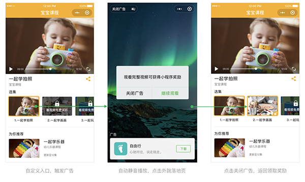 1、小程序激勵式視頻廣告是指用戶在小程序內主動觸發的一種廣告模式,用戶完成廣告視頻觀看后可獲得流量主設定的相應獎勵。
