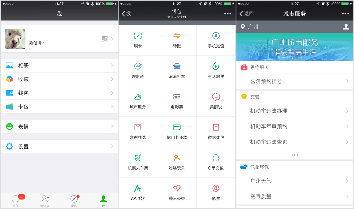 城市服務,是公眾平臺面向政府及事業單位提供的整套政務民生服務解決方案,是“互聯網+”政務民生服務落地的重要組成部分。微信城市服務能夠讓用戶快捷地獲取政務民生服務,同時也幫助提供服務的公眾號釋放服務能力,沉淀用戶。