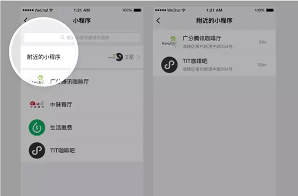 “ 公眾平臺新增附近的小程序功能,微信用戶通過打開附近的小程序可獲取更多小程序提供的服務。運營者只需要填寫自己企業或門店的地點信息,即可快速設置特定地點展示自己的小程序。”