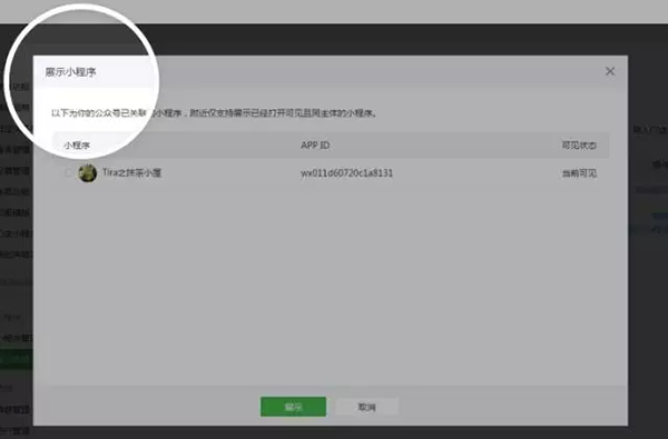 公眾平臺支持兩種方式設置小程序展示在“附近的小程序”。