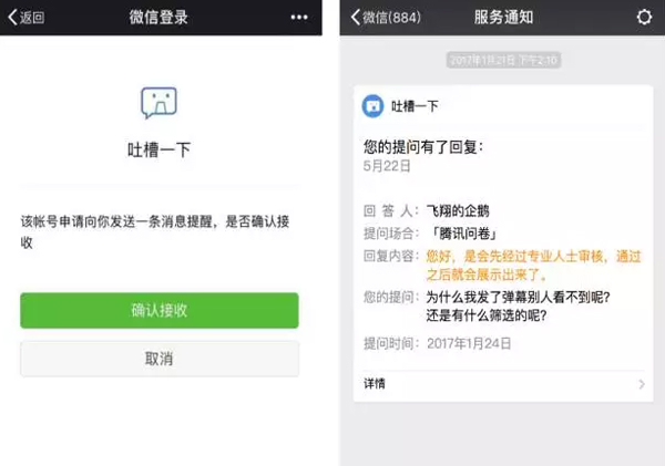 公眾號和微信內(nèi)網(wǎng)頁,用戶也可訂閱消息提醒。在未關(guān)注公眾號時,可在服務(wù)通知中收到一條消息提醒,如果已關(guān)注公眾號,則可以在公眾號會話內(nèi)收到消息提醒。