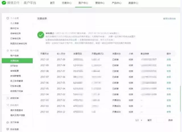 商戶可電腦登錄微信支付商戶平臺- 賬戶中心 - 發票信息,了解每月的發票開票情況、寄送情況。