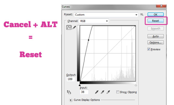 ps的小白們一定會覺得曲線和色階調整不好把控,部分時候有些色階結合或其他的調整不能很好的融合,而這到時設計師不得不重新開始,通俗的對應方法是:點擊取消按鈕,或者重新打開調整面板。不過這里文率小編想給大家分享一個節省時間的小竅門,當你想要重新做一個曲線,不要直接點擊取消按鈕,按住ALT鍵,“取消”將會瞬間變身成一個叫“復位”的東西,點擊復位,曲線就會回到初始狀態啦!