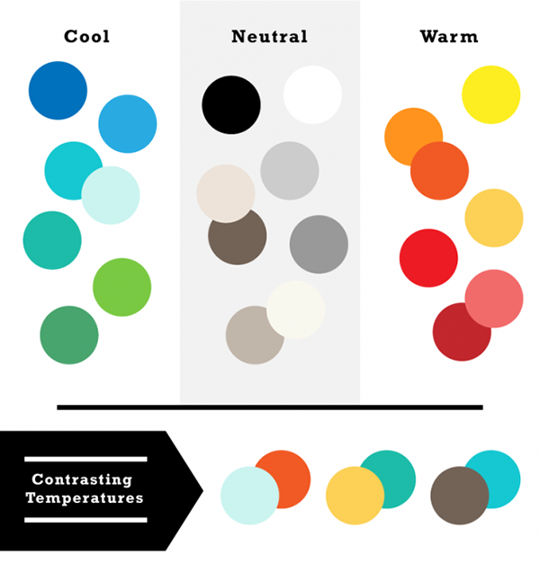 配色同樣最容易被感知到的設(shè)計元素,色彩的色相、明暗、飽和度上的差異,都可以制造足夠的對比度。同一種色相下,不同深淺的顏色之間的對比是非常明顯的,而我們最常見的就是在黑色背景上的白色文本和在白色背景上的黑色文本,這種對比度確保了內(nèi)容擁有基本的可讀性。當(dāng)然,在實際的色彩搭配當(dāng)中,對比度足夠明顯的配色方案會更加復(fù)雜,通常而言,下面的幾種搭配方式能夠給你對比明顯效果不錯的配色: