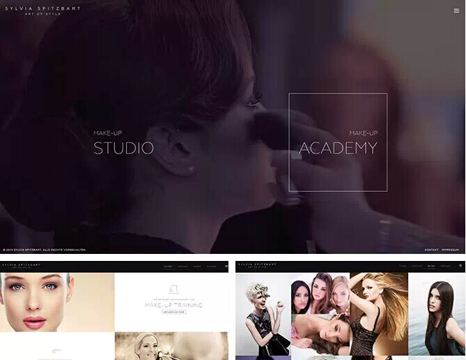 例如:“sylviaspitzbart”化妝工作室,利用纖細線框,將內容很好的分割,頁面簡潔而大方又不失品質。
