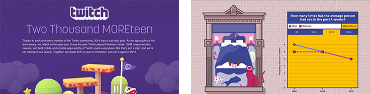 一、2015年大部分的網站首頁的背景都采用了一些背景清晰、寫實的大圖,如照片和插圖。使用逼真、清晰的圖像從來不會過時,但是流行與否則取決于使用的方法。背景清晰、寫實的大圖現在是直接作為背景,插圖的色彩是非常重要的,色彩搭配是設計界永恒的話題,它決定了插圖的品質。