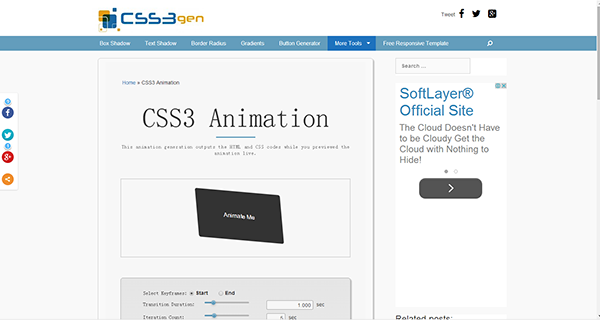 CSS3 Animation動效工具操作起來很容易,能夠節省設計師很多的時間,你可以在它提供的簡單圖形界面里,通過拖拽一些進度條來控制你的動效,生成的CSS代碼會自動顯示在下面的一個文本框里,你可以拷貝粘貼到你的應用中直接使用。