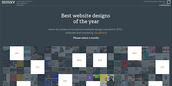 當(dāng)進(jìn)入網(wǎng)站后界面以后,你會(huì)發(fā)現(xiàn)MMXV網(wǎng)站中并不存在多余的介紹和花里胡俏的裝飾,有一行關(guān)于網(wǎng)站主人zitrusfrisch 的介紹,他是一個(gè)國(guó)外服務(wù)類產(chǎn)品中非常有威望的設(shè)計(jì)師,榜單的收集和網(wǎng)站的視覺設(shè)計(jì)都是由他一人完成的,非常良心。