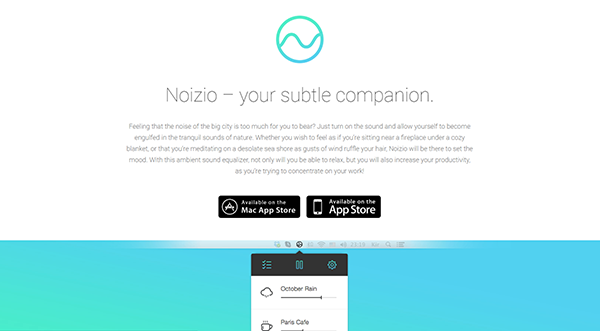 很多的時候當設計師沒有靈感時,會選擇去一些有情調的地方,如:咖啡廳來尋找創(chuàng)作的氛圍,Noizio將能夠很好的幫你將這種氛圍帶到家中。Noiz.io提供了十月雨聲、喧鬧的巴黎咖啡廳、雷雨聲等10種不同的白噪音音效,不僅如此,設計師還能夠依據(jù)用戶要求,或者是用戶的喜好來隨時的混搭音效。