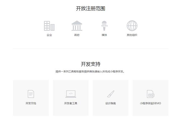 2、開發支持:提供一系列工具幫助開發者快速接入并完成小程序開發;