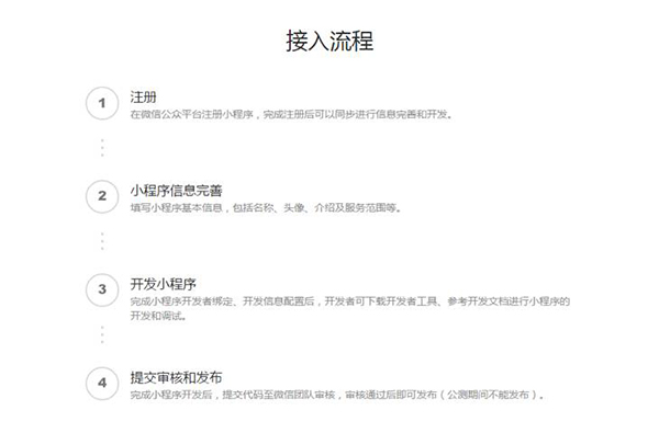 3、開發小程序:完成小程序開發者綁定、開發信息配置后,開發者可下載開發者工具、參考開發文檔進行小程序的開發和調試。