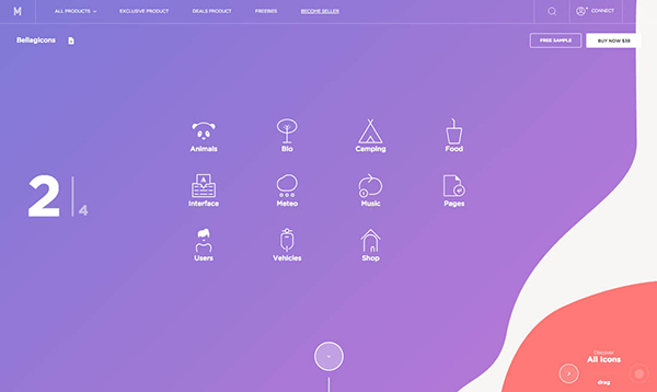 不知道小伙伴們是否已經意識到,不同形狀,不同風格的圖片,一旦成群結對的 出現在屏幕上,總能夠給人們帶去不一樣的體驗,所以作為設計師你可以考慮將圖標擺成不同的陣列,如果你想強化視覺,甚至可以將圖標放大來使用。另外,最主要的是使用圖標集群他不僅會讓你跳出日常圖標的使用窠臼,重新思考圖標的使用方法;同時你可以基于某個圖標包來設計,也可以根據需求自定義。