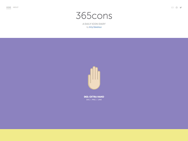 365cons不知道作為設(shè)計(jì)師的你是否了解對(duì)其有過(guò)了解,它是Amy Devereux所制作的每日更新的“圖標(biāo)日記”,這些圖標(biāo)被設(shè)計(jì)成不同的樣式,對(duì)于設(shè)計(jì)師尋找靈感來(lái)說(shuō)是相當(dāng)不錯(cuò)的選擇,如果現(xiàn)在的你也在迷茫,不知所措的話(huà),不妨多瀏覽些這樣的網(wǎng)站,用其作為靈感來(lái)源還是相當(dāng)不錯(cuò)的哦!