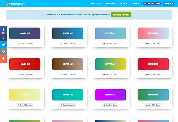 很多的時(shí)候,設(shè)計(jì)師在設(shè)計(jì)一款app或者是商城類(lèi)網(wǎng)站時(shí),經(jīng)常為按鈕發(fā)愁,GRADIENT BUTTONS的出現(xiàn)很好的幫助用戶(hù)解決按鈕的問(wèn)題,如果你已經(jīng)厭倦了扁平風(fēng)按鈕,那么相信Colorion 的漸變按鈕一定能夠吸引到你,這些按鈕包含了單色和多色等多種不同的類(lèi)型,提供CSS樣式,一鍵啟用,并且你甚至可以通過(guò)搜索找到匹配你的配色方案的按鈕。