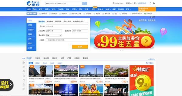 藍色無形之中給予了人們一種安全感,這也是為什么很多的旅游行業的app和網站采用藍色作為UI設計的主要原因,它隱隱傳遞出可靠,信任的感覺,而這無疑也是旅游類應用和網站的最佳選擇,如目前深的大眾親睞的攜程旅游網,它的logo以及網站整體的主色調采用的都是藍色的設計。
